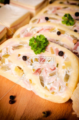 Tasty cheese rolls with russian salad